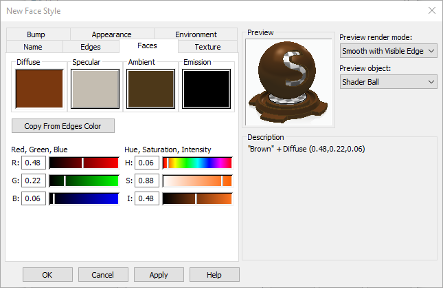 2. In the Style dialog box, set the Style Type to Faces Styles.